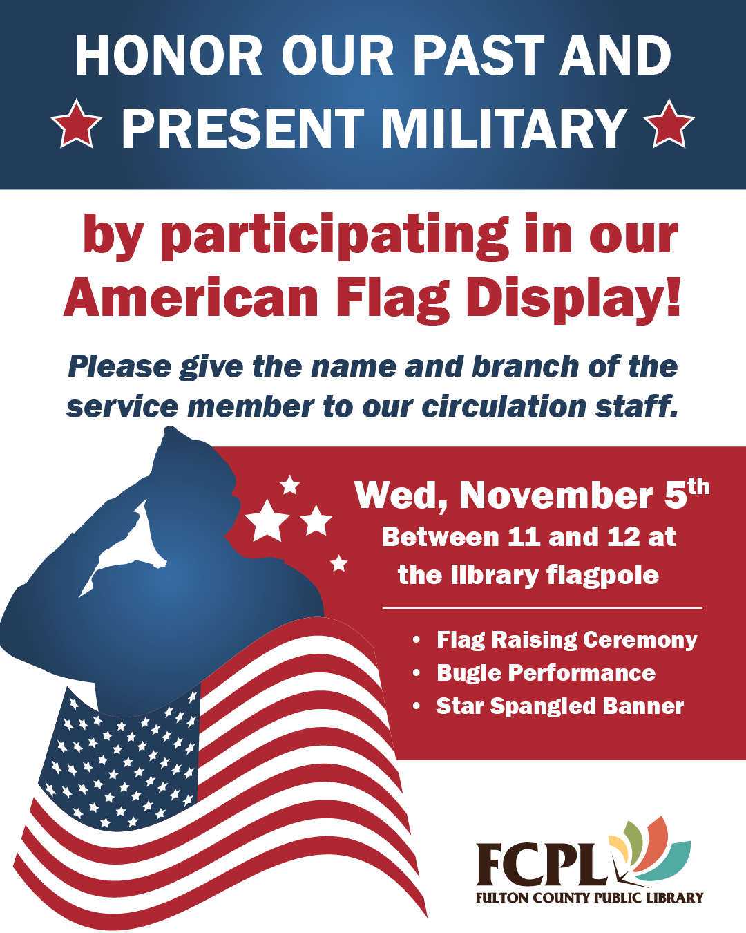 Fulton County Public Library in Rochester honors veterans with American Flag display and flag raising ceremony