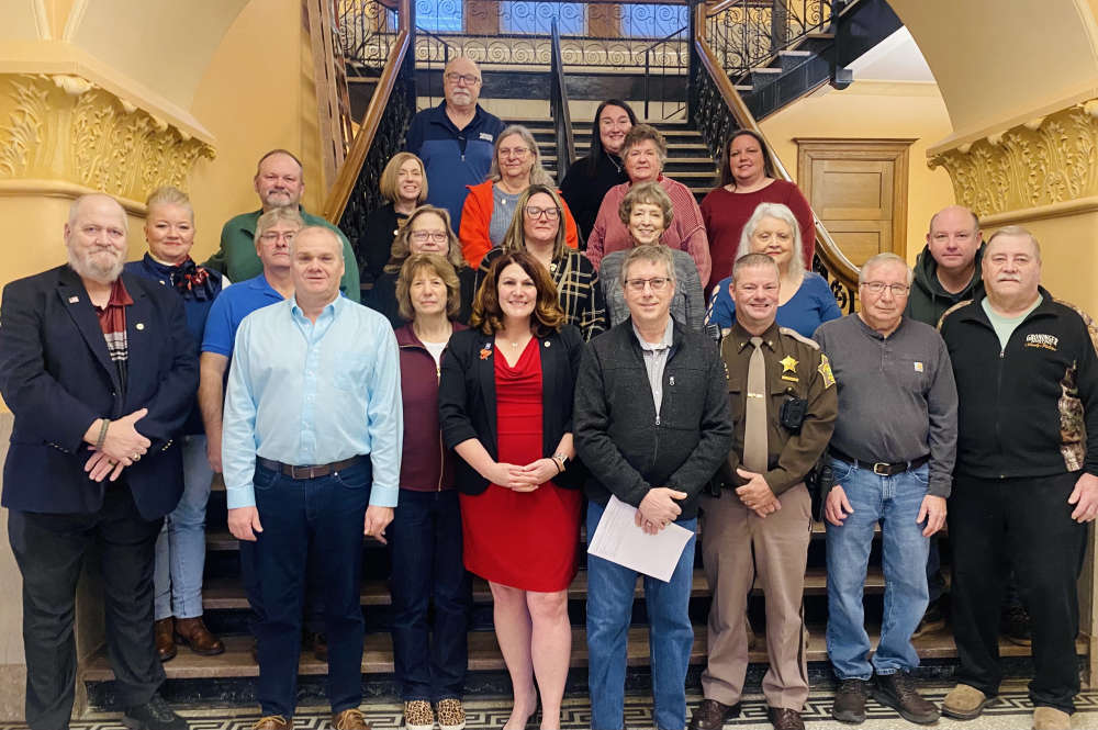 Front row, from left: Randy Gundrum, Council District 4; Rick Ranstead, Delegate at Large; Carrie Ranstead, Delegate at Large; Amy Roe, Fulton County Republican Chairwoman; Mike Canada, Vice Chairman; Fulton County Sheriff Travis Heishman; Jim Saner, Akron Town Council; Greg Groningen, Henry Township Board.