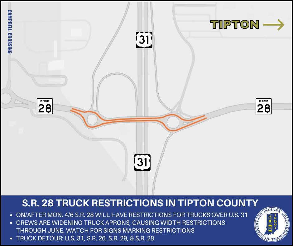 Truck traffic restricted for roundabout work on State Road 28 in Tipton