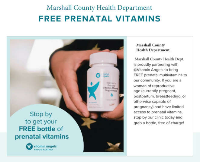 Marshall County Health Department partners with Vitamin Angels to offer FREE prenatal vitamins