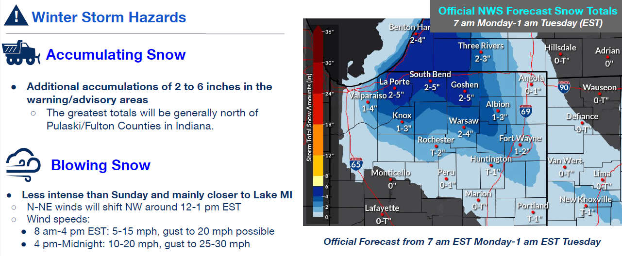 Marshall County EMA Director Jack Garner expects additional snowfall later today, though he does expect the total to be less than what we got on Sunday. Probably 2 to 4" of new snow beginning this afternoon and lasting into the late evening.