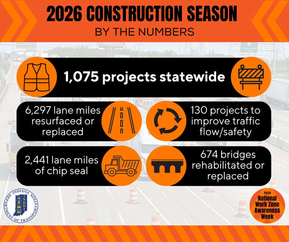 INDOT marks official start of 2026 construction and maintenance season, urges importance of driving safely in work zones