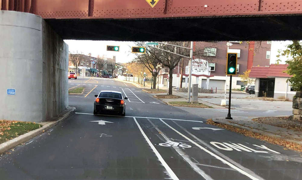 The engineer said the new markings are clearly different that were discussed at the city meeting two weeks ago. Initially, northbound traffic and those wanting to make a right turn onto Pennsylvania Avenue were to stay in the left lane, and the bike lane was in the right lane of the road.