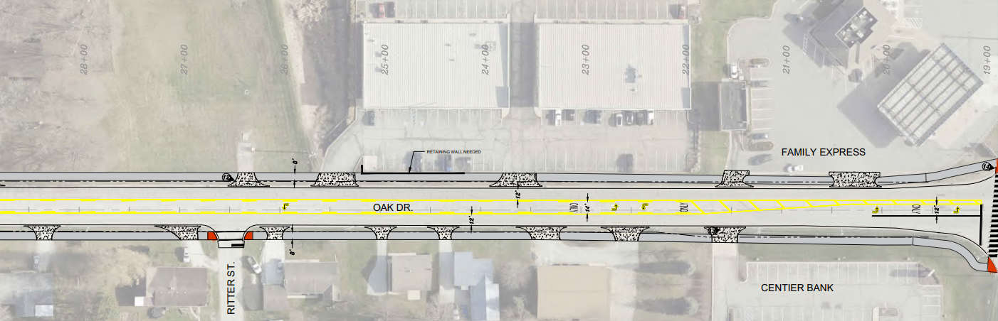 According to Sellers, sidewalks are currently proposed for both sides of Oak Drive from Jefferson Street north to U.S. 30. From Jefferson Street south to State Road 17, sidewalks will be constructed only on the east side of the street.