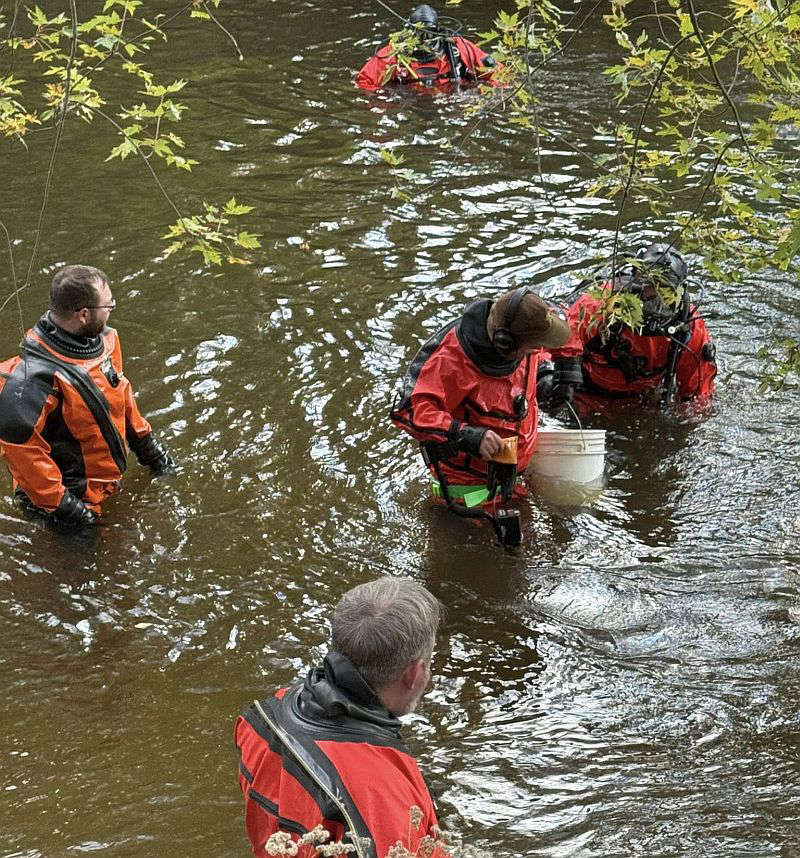 Detective Workman contacted the St. Joseph County Dive Team, and they agreed to come attempt to retrieve the handgun from the river. This morning (10/24/25), several members of the St. Joseph County Dive Team dove the river and located the stolen handgun. No other items of note were located; however, the Dive Team removed several items from the river.