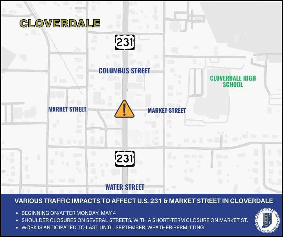Several traffic impacts to affect the U.S. 231 & Market Street area in Cloverdale
