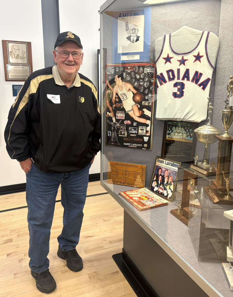 Harry Larrabee with his Indiana Basketball Hall of Fame display in New Castle.
