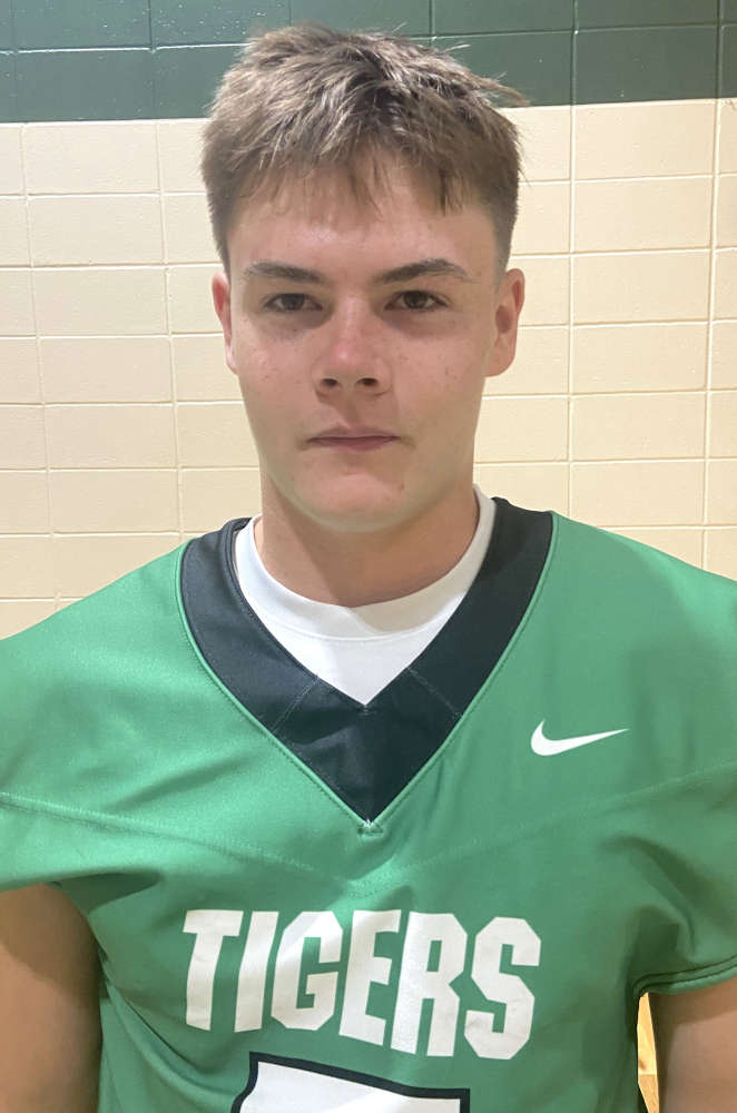 The second quarter was no better than the first for the Knights. Its fourth drive ended with a bobbled snap on fourth down. The Tigers responded with a 16-yard touchdown pass from Matthew Wilkins to Conner McClure (photo).