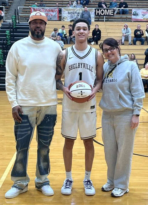 SHS Athletics photo: Shelbyville senior Mar Nicholson was honored Tuesday for scoring his 1,000th career point earlier this season.
